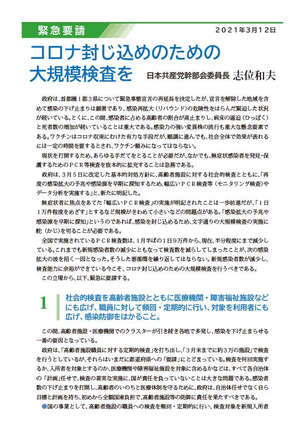 緊急要請 コロナ封じ込めのための大規模検査を